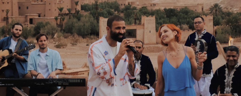 Les artistes parcourent différentes villes du pays, de Rabat à Ouarzazate en passant par Fès, et interprètent des titres emblématiques dans des lieux chargés d’histoire et de culture. Chaque chanson devient ainsi une véritable carte postale musicale, entre traditions locales et moments de partage.