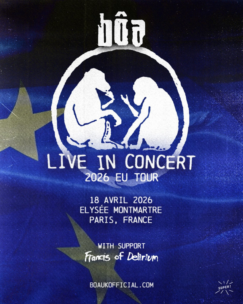 Le groupe culte des années 90 Bôa sera en concert à l’Élysée Montmartre le 18 avril 2026 pour une date exceptionnelle à Paris.